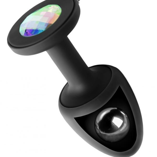 Take anal pleasure to the next level with the Paragon. A velvet soft plug that is tapered at the top for easy insertion. It is easy to remove with an elongated neck that ends with a flared base set with a brilliant multicolored gem. The plug is internally weighted with a rolling inner ball for added stimulation. The internal weighted ball is accompanied by four powerful vibration modes. Simply use the wired remote control and move the switch up to select your desired speed setting. The removable silicone sleeve gives this plug an enticing matte texture. If you desire a more slick feel, simply take the sleeve off.