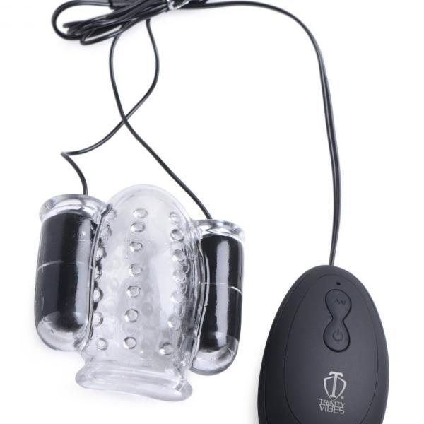This intense head teaser features two powerful bullets attached to the TPR sleeve to fully encompass the tip of your penis for unforgettable teasing sensation! Use on your own or on your partner to heighten their sexual cravings.