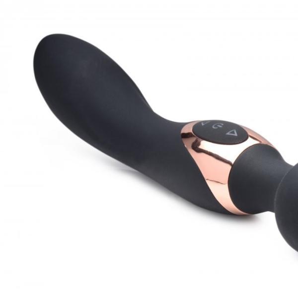 Enjoy both ends of this classy 2 in 1 silicone massage wand! This double ended vibrator comes with a classic massage head with a flexible neck on one end, and a deliciously curved silky smooth vibrating handle for a wider contact area and penetration possibilities!