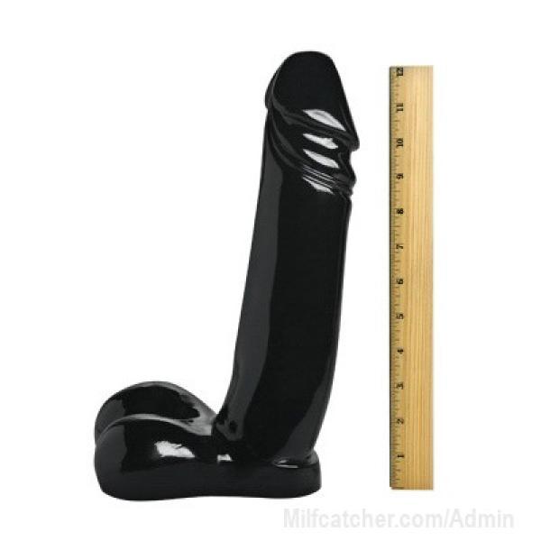 This thrilling black dildo is a full 12.5 inches of ass-stretching glory. The deep black PVC material is perfect for the stiffness needed when pounding such an intimidating specimen of cock. Work your way past the flared cock head, revel in every slick inch of shaft as it slides in, and bottom out at the round, enticing balls. A wide base and pleasing weight keep this immense monster steady as you take it over and over. PVC is the perfect blend of firmness and flexibility, making it ideal for larger toys or ass play.