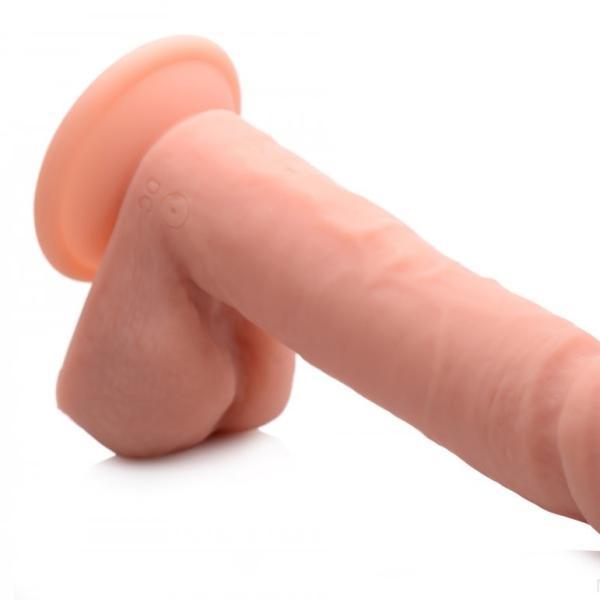 Go balls-deep on a remote-control vibrating dildo that is truly the whole package! The phallic head, sculpted shaft, and perky scrotum look and feel like the real thing, while you are vibed by 7 patterns that buzz at 3 strength levels, for a total of 21 functions of vibration! Use it with or without the remote control, which provides more convenience during solo play, and an exciting power dynamic during partner play. The strong suction cup base allows you to mount it to a smooth, hard surface and take it for a ride, but it is also harness compatible for strap-on play. The waterproof pleasure tool can even be taken in the bath or shower for steamy, wet fun! This premium material is non-porous and phthalate-free for a body-safe experience, but not compatible with silicone lubricants.