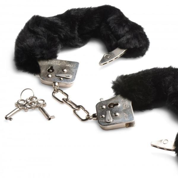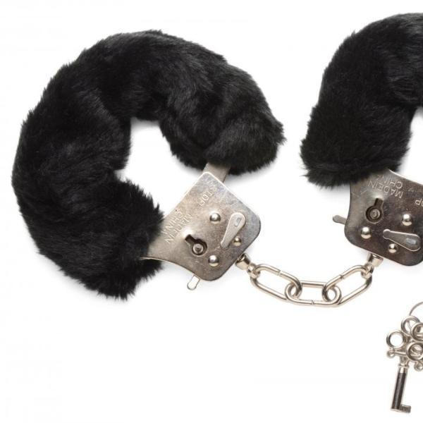 Submit, comply, and consent to a sexual unfolding as your lover pulls your arms above your head...or behind your back, leaving you waiting and wanting. Courtesan Cuffs by Frisky will assist you in your adventure into the land of BDSM with the softness of fur and the cool strength of metal wrapped firmly around your wrists. Durable and easy to use, the Courtesan Cuffs are adjustable to ensure a comfortable experience. Locks on both cuffs, a set of two keys, and a chain connector that allows for looping other bondage restraints through for even more play.