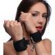 Make your next bondage session more secure and comfortable with these durable Heavy Duty Cuffs! The inside of the cuffs are lined with neoprene, making it easier and more comfortable for extended use, and have a nylon velcro strap. One cuff has a spring loaded metal clip while the other cuff has a D-Ring. You can use the clip to connect one cuff to the other or you can use the D-Ring and clip separately and attach each to a different object! Explore the many and endless possibilities of bondage with the Marquis Wristlets!