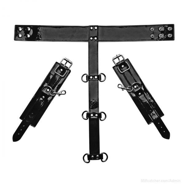 Confine your partner is this fully adjustable neck and wrist restraint system! Whether your play thing is wearing this set down their front or back, the removable cuffs can be moved onto any of the three D-rings on each side. Leave your lover trapped and expose as you pleasure them. The neoprene lining is comfortable and durable for long-term use with many repeats! The snap collar is easy to put on and remove quickly, and the buckle cuffs are elegant and will offer no escape! This vegan-friendly system is perfect for beginners and bondage enthusiasts alike!