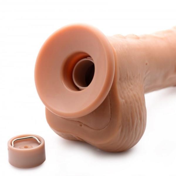 This Loadz dildo comes with an automatic squirting function (with a max capacity of 10 ml) that sends the liquid of your choice wherever the dildo is pointed. Use your favorite cum lube for a realistic smell, texture, and appearance.