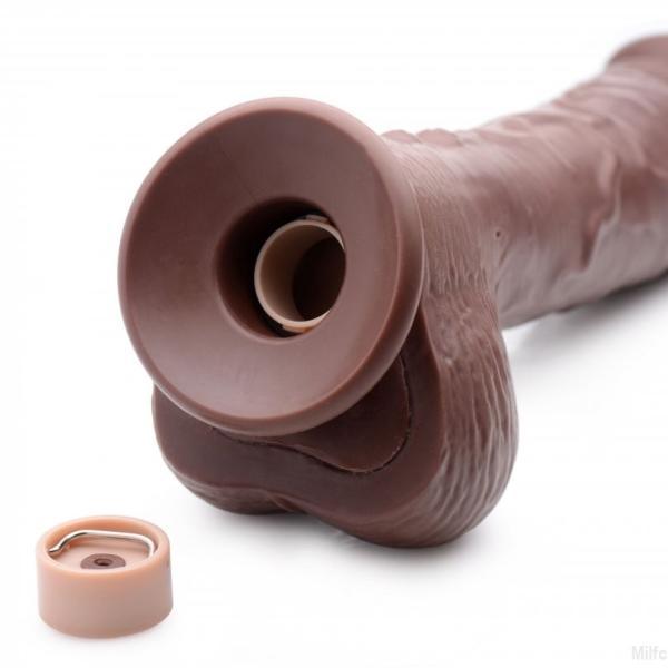 This Loadz dildo comes with an automatic squirting function (with a max capacity of 10 ml) that sends the liquid of your choice wherever the dildo is pointed. Use your favorite cum lube for a realistic smell, texture, and appearance.