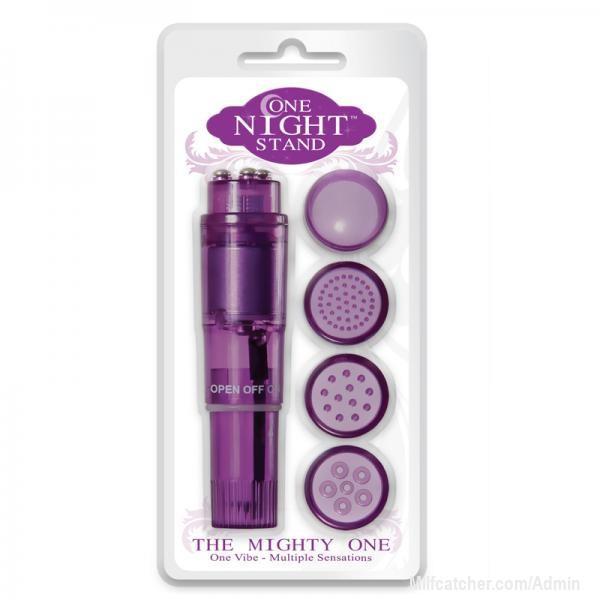 One Night Stand The Mighty One Pocket Rocket Purple with 4 attachments. Powerful mini pocket rocket multi-vibe 4 different textured attachment for unique sensations. Made from smooth ABS plastic. Pocket rocket vibrator requires 1 AAA battery, not included. Sold separately.