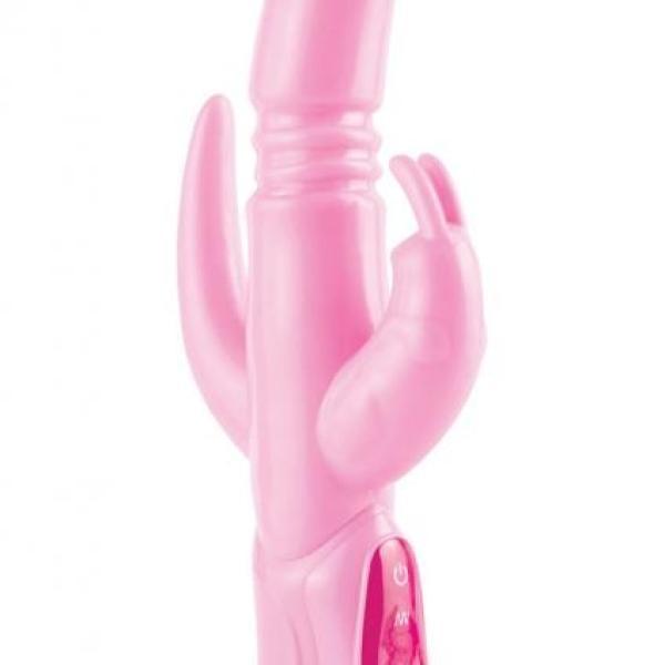 This triple stimulator vibe features an amazing thrusting shaft that effortlessly glides in and out, mimicking your partners natural motion while simultaneously providing incredible clitoral vibration. The exclusive thrusting mechanism feature 3 powerful speed settings and a super powerful motor, making it the most advanced triple action rabbit vibe on the market today.