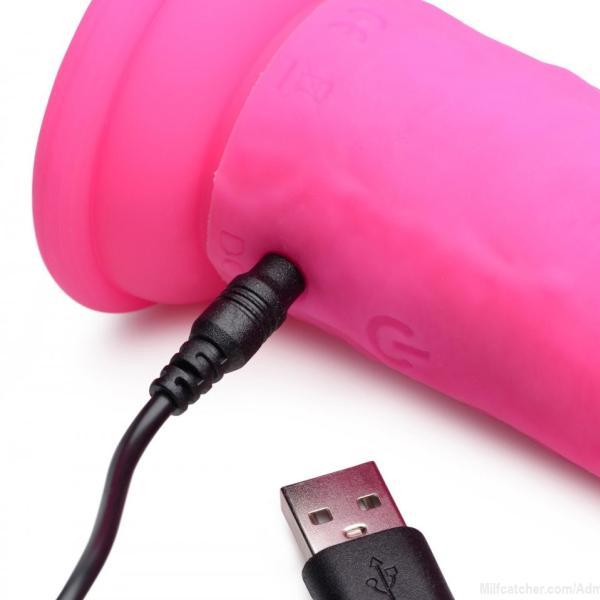 Indulge in this meaty, silky smooth and realistic cock! This dildo not only has a sexy, smooth head, veins along the shaft and realistic firmness, it also comes with powerful vibration! Choose between 4 speeds and 7 patterns of vibration that you can control with the remote control included! Play with yourself by placing the suction cup base on a flat surface and riding it to satisfaction, or pair it with a harness to have fun with a partner and explore pegging and strapon play!