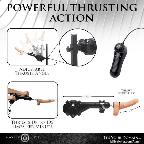 Sex Machine Included: The powerful sex machine is included with a TPE rubber dildo. It can be attached to the stockade or used manually to get a different angle. Thrusts up to 195 times per minute!
