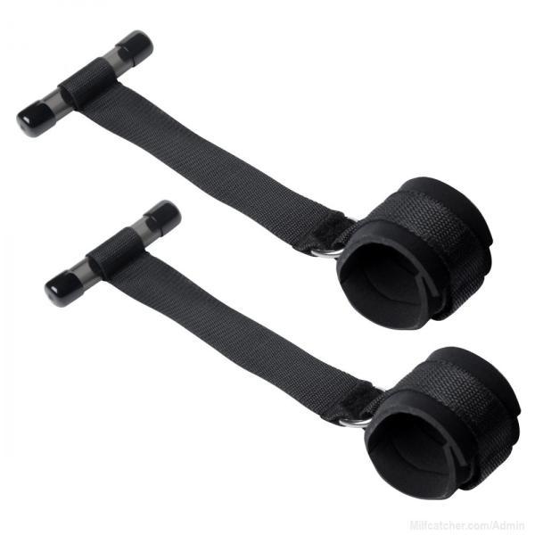 Made of durable neoprene material with sturdy plastic barrels to hang behind the door, these over the door Entryway Restraints will keep them pleasantly compliant. The cuffs fasten securely with Velcro enclosures and feature removable clasps so you can play with or without the door restraints. The end barrels can be placed at the top of a door or the bottom, or anywhere that can secure them. The possibilities are endless!