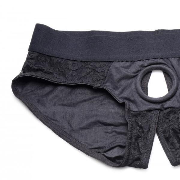 This lacey harness is crafted for functionality and comfort. The crotchless design keeps you ready for action when the mood to switch positions arises, allowing you and your lover to play with absolute freedom. The lingerie styling and universal O-ring let you get your strap-on in style and comfort!