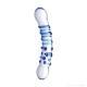 This gorgeous glass dildo is double-ended for your endless pleasure! Experience both sensual textures when you play with this incredible erotic stimulator. Two round, bulbous tips allow you to choose which smooth end you would like to slip into yourself, or your lover, before feeling the delicious delights of the raised swirls or the elevated nubs. Slightly curved, this device is perfect for rocking against those sensitive spots that will make your toes curl. Great for temperature play, you can heat or cool this luxurious material in hot or cold water for a unique experience that will take you to greater heights of bliss. The non-porous glass is easy to clean and sterilize, shatter resistant, non-allergenic, and compatible with any lube of your choosing.